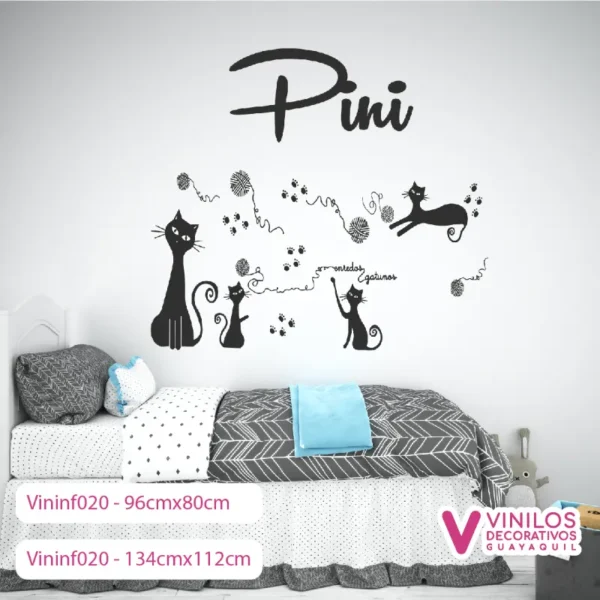Con nuestros encantadores vinilos infantiles de gatos negros, las paredes se llenarán de misterio y encanto, creando un ambiente mágico y divertido para tu pequeño.