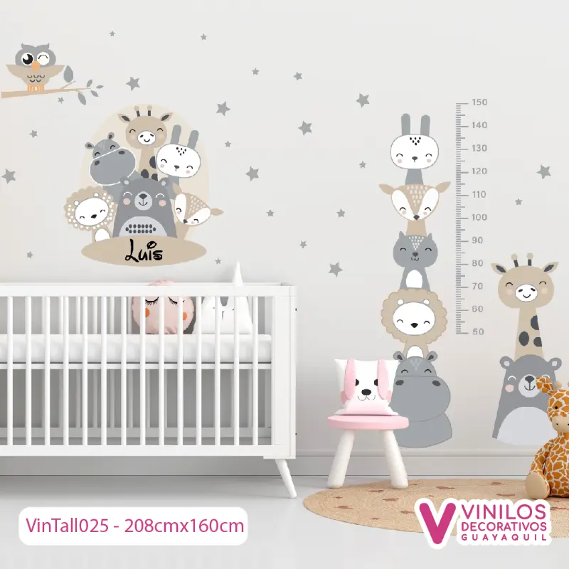 ¡Un regalo único y tierno para tu pequeño! Combina el nombre de tu hijo con un conjunto de animalitos adorables en un vinilo decorativo tallímetro infantil. ¡Una manera divertida y personalizada de decorar su habitación y medir su crecimiento!