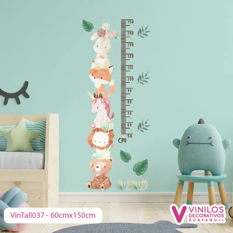 Cada vez que te acerques a medir a tu pequeño, los animalitos estarán allí para celebrar con él. Desde el suelo hasta lo más alto, una pandilla de amigos tiernos y coloridos lo acompañan en cada centímetro, haciendo de la rutina de medirse un momento lleno de alegría y ternura.