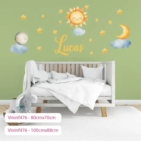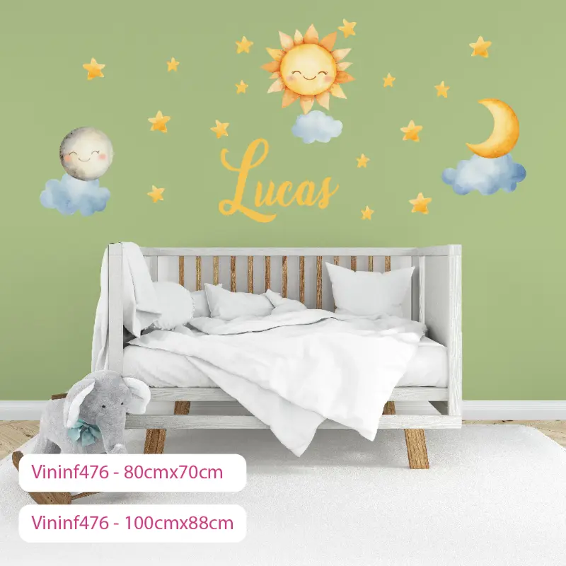 Opcional: El nombre de tu pequeñ@ escrito en una nube o en un rayo de sol, para personalizar su cielo.